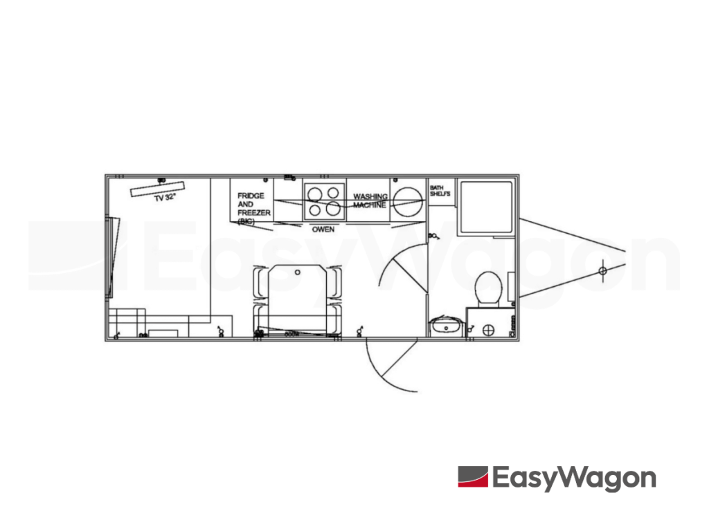 Een mobiele woonunit wordt meestal compleet ingericht geleverd. Je mag denken aan een woonkamer met verwarming, een keuken met apparatuur en één of meerdere slaapkamers. Ook een badkamer met douche en toilet zit standaard in veel modellen.